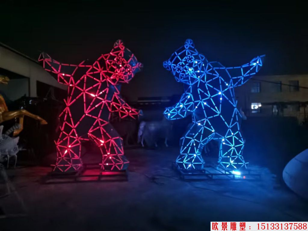 不锈钢切面熊猫雕塑 灯光熊猫雕塑2